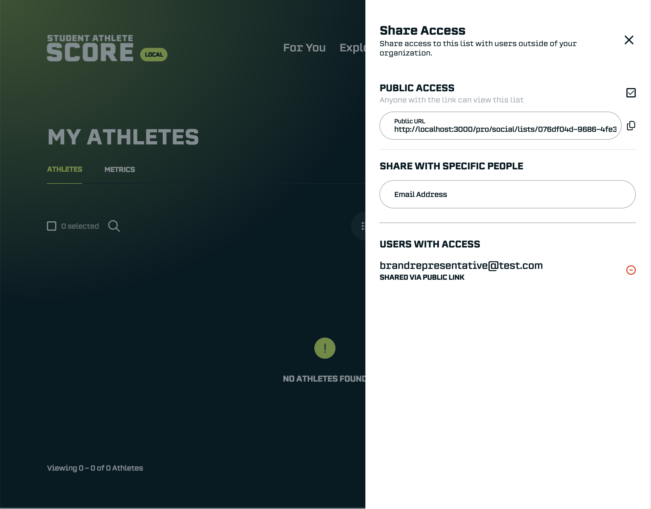 Click the "Share" button on an athlete/list/campaign, to see a "Public Access" section in the sidebar with a checkbox to enable/disable public sharing.